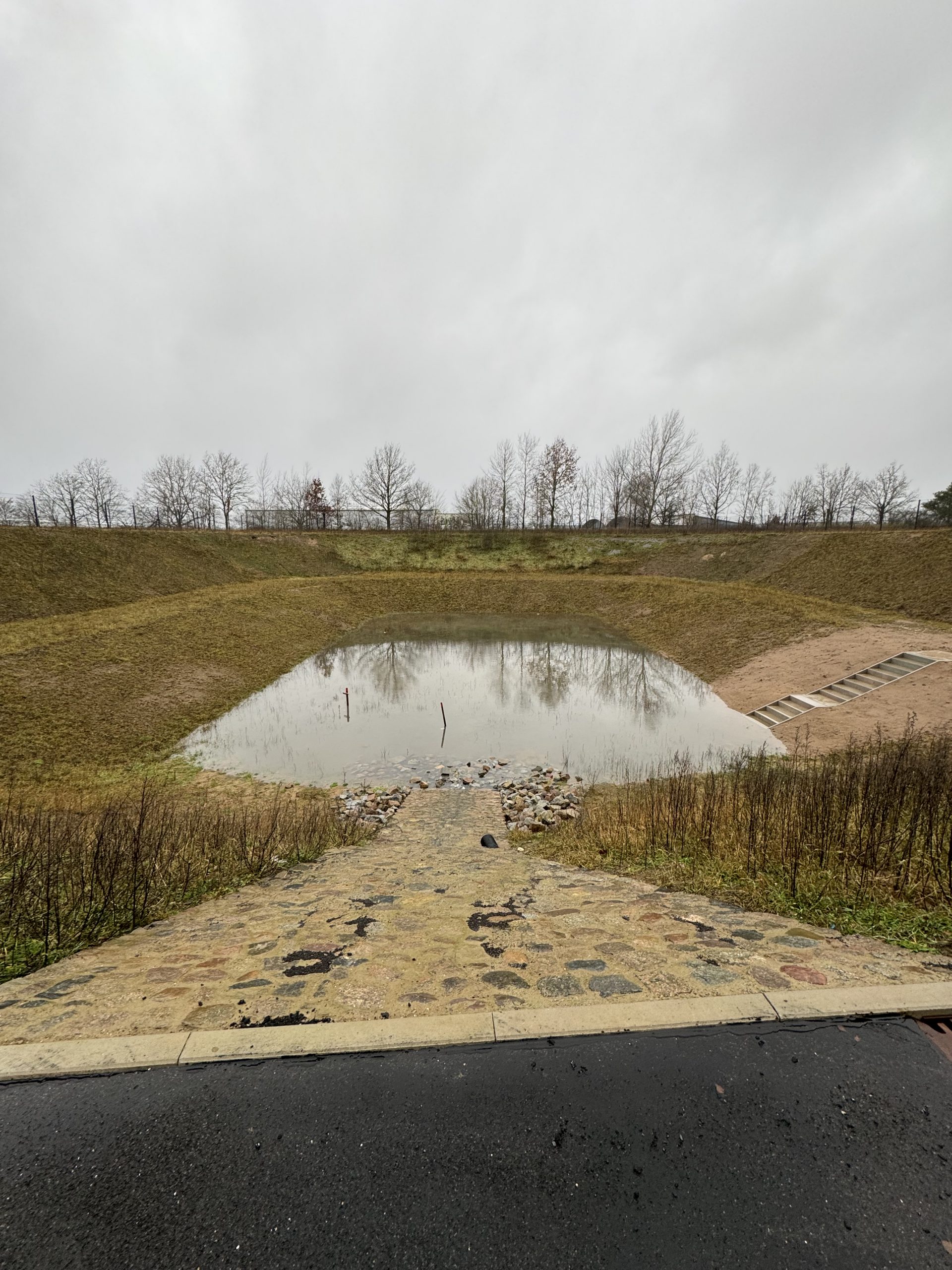 - Straßenentwässerungseinrichtungen mit Regenwasserkanal und Versickerungsbecken
