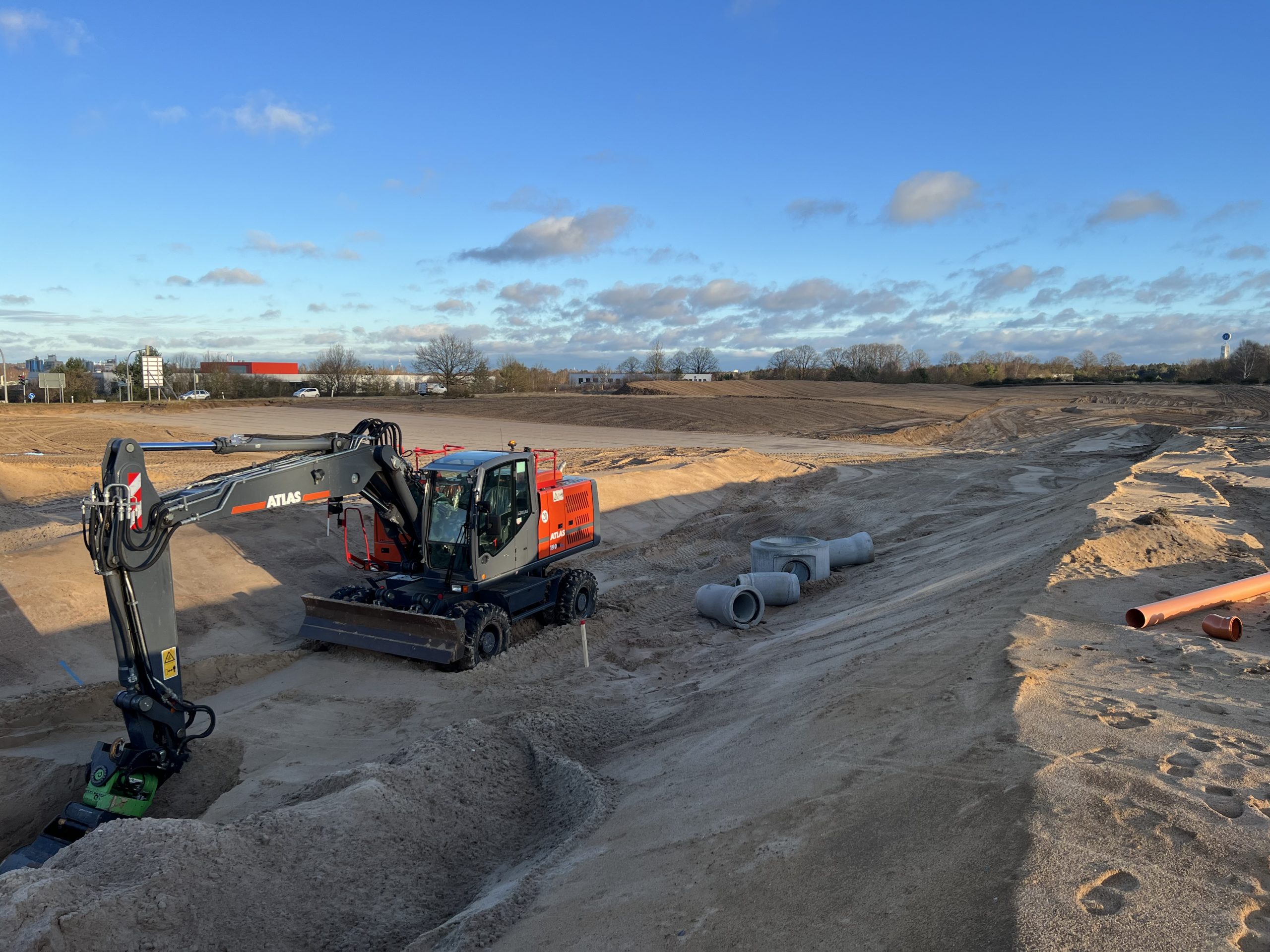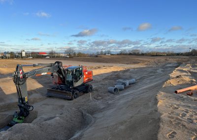 - Verlegung von Ver- und Entsorgungsmedien mit Grundstücksanschlüssen (Schmutzwasser, Trinkwasser, Telekommunikations-, Strom- und Gasleitungen)